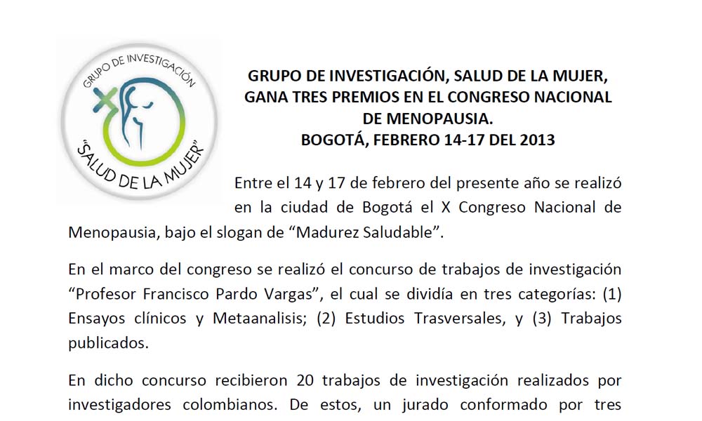 El mes de mayo el Grupo de Investigación Salud de la Mujer presentará 10 de los estudios en diversos escenarios nacionales e internacionales