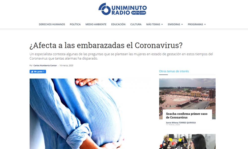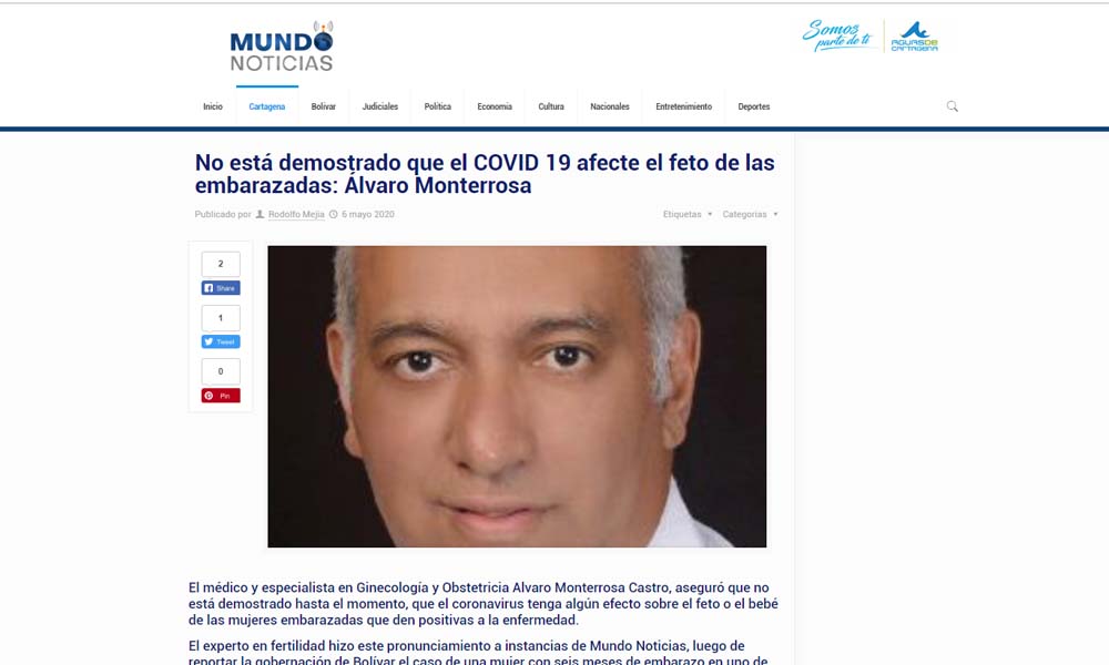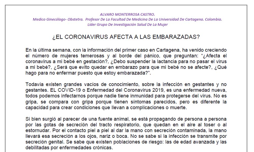 No está demostrado que el COVID 19 afecte el feto de las embarazadas: Álvaro Monterrosa