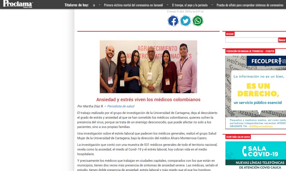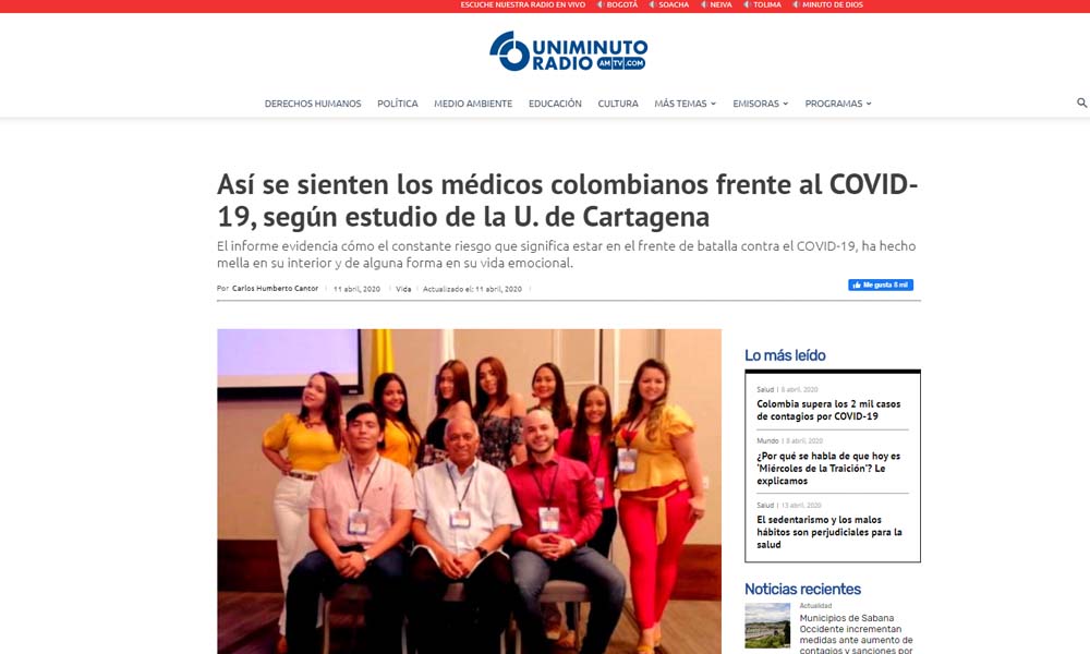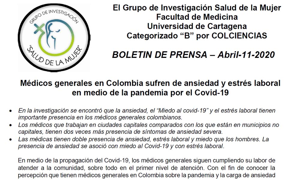 Así se sienten los médicos colombianos frente al COVID-19, según estudio de la U. de Cartagena
