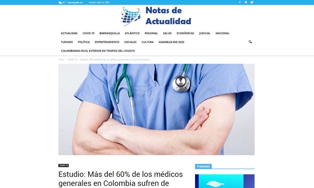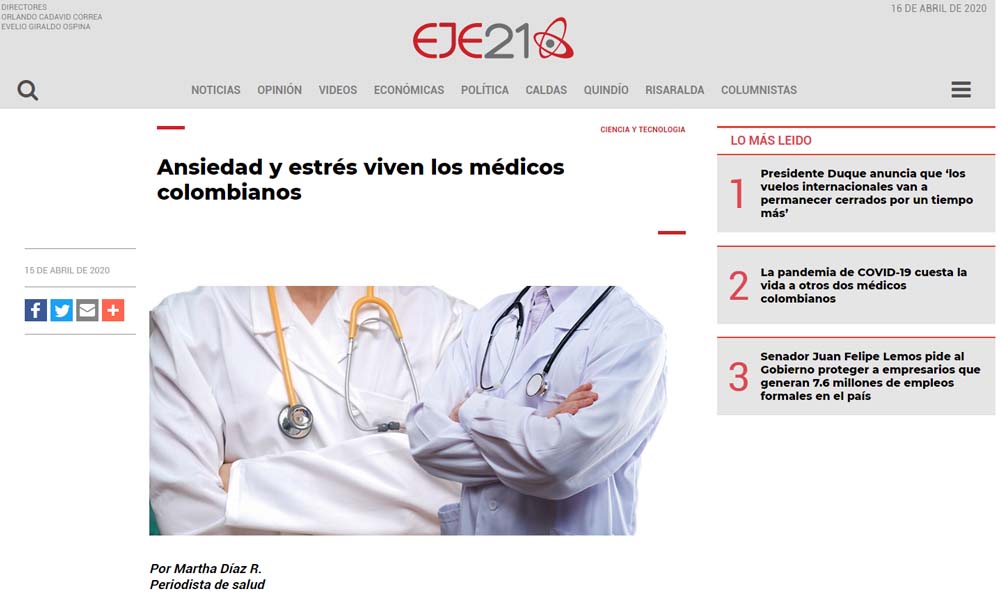 Médicos generales en Colombia sufren de ansiedad y estrés laboral en medio de la pandemia por el COVID 19
