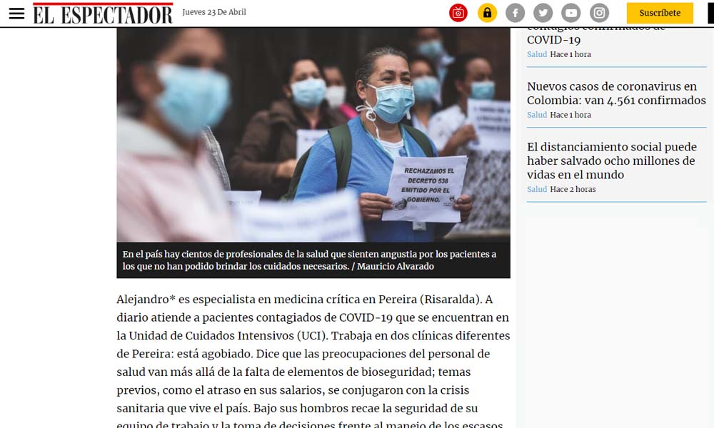 Médicos generales en Colombia sufren de ansiedad y estrés laboral en medio de la pandemia por el Covid-19