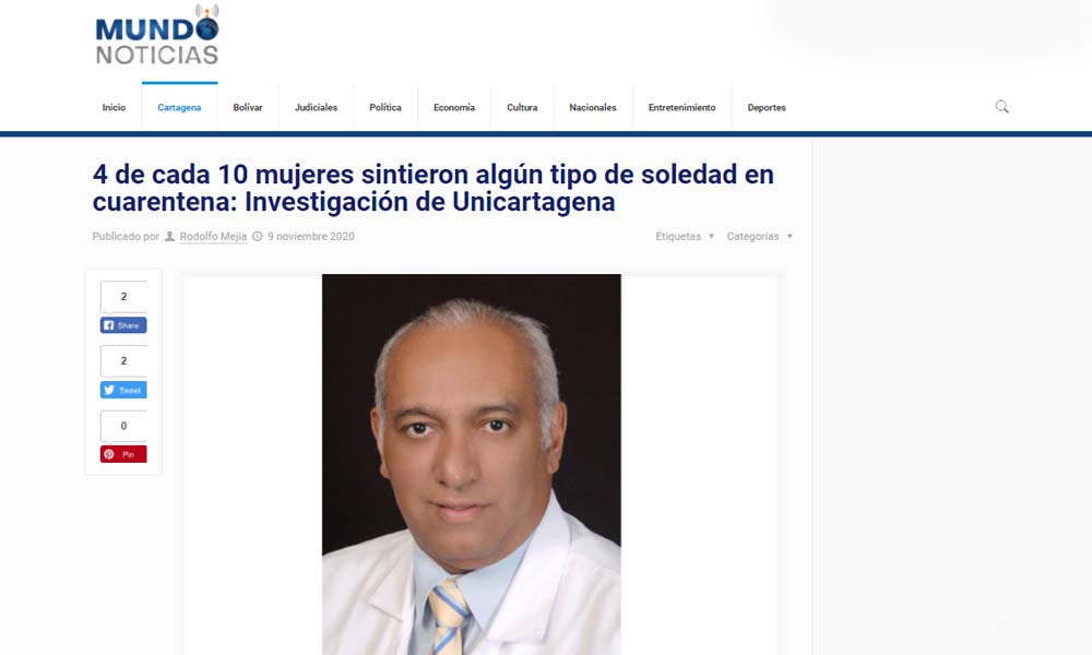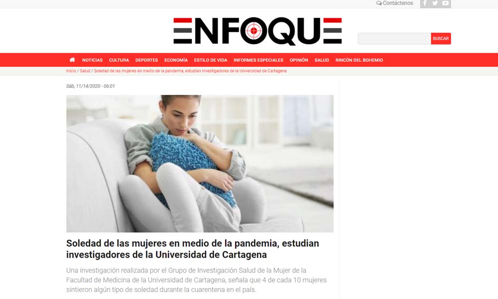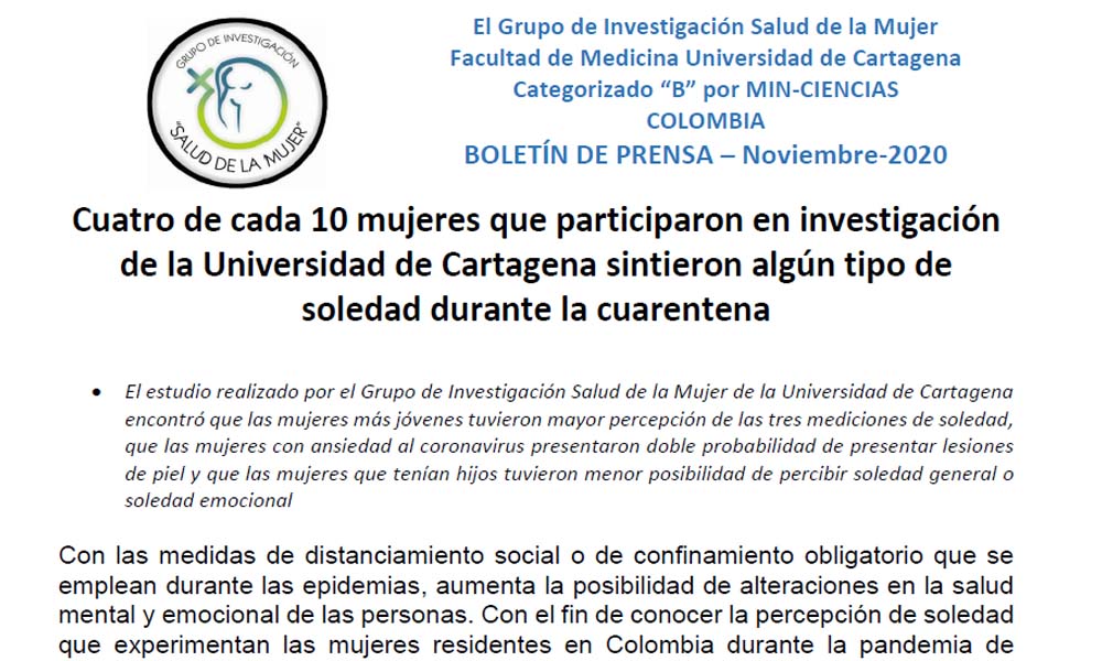 Cuatro de cada 10 mujeres que participaron en investigación de la Universidad de Cartagena sintieron algún tipo de soledad durante la cuarentena