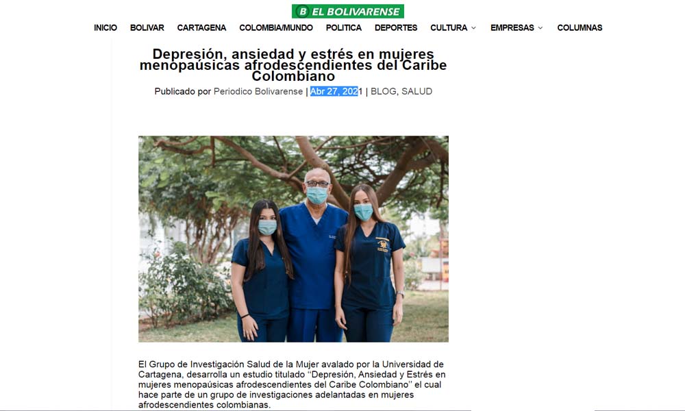 Depresión, ansiedad y estrés en mujeres menopaúsicas afrodescendientes del Caribe Colombiano