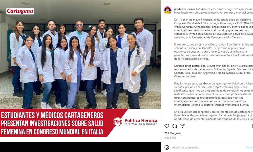 Estudiantes y médicos cartageneros presentan investigaciones sobre salud femenina en congreso mundial en Italia
