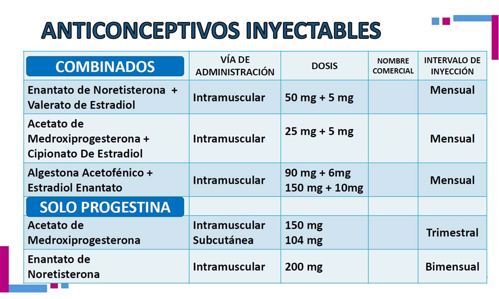 Anticonceptivos inyectables.