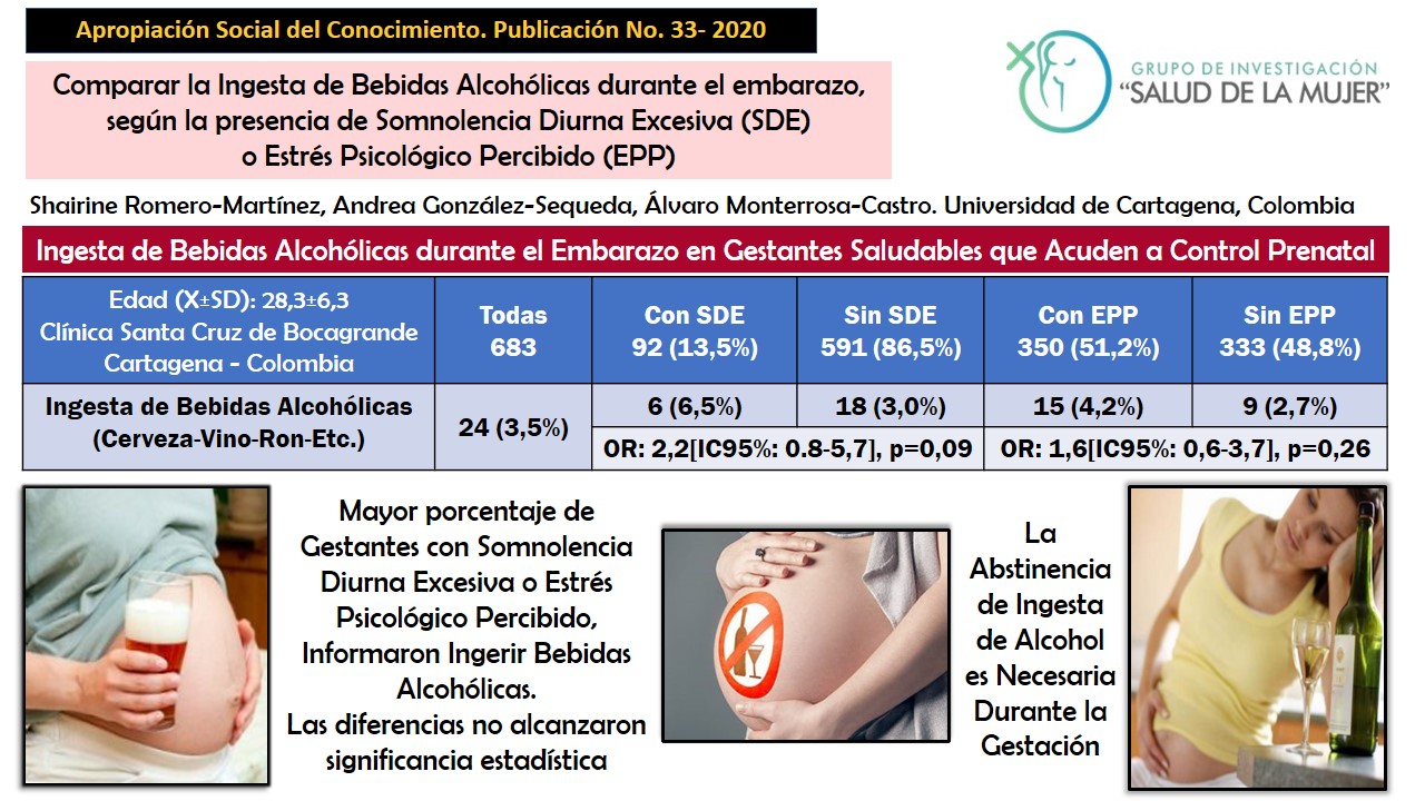 Comparar la ingesta de bebidas alcoholicas durante el embarazo, según la presencia de somnolencia