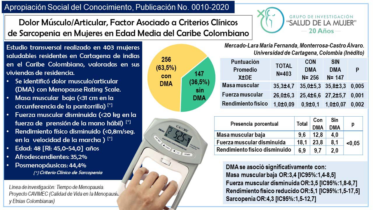 Dolor músculo/articular, factor asociado a criterios clínicos de sarcopenia en mujeres en edad media del caribe colombiano.