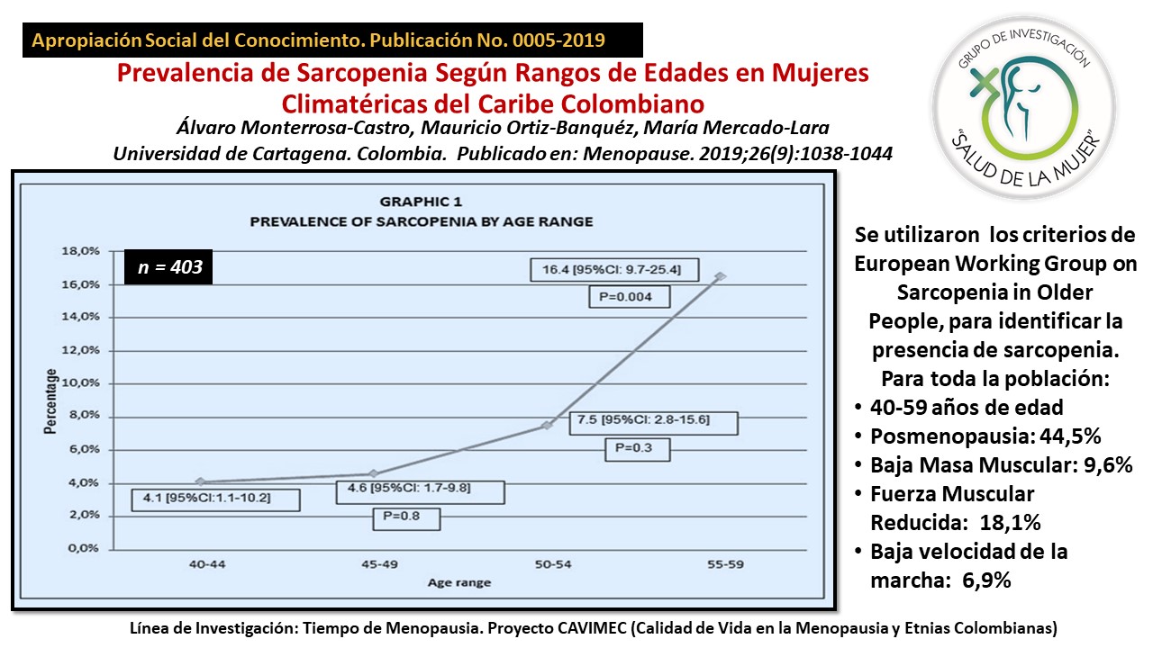 Prevalencia de sarcopenia según rangos de edades en mujeres climatéricas del caribe colombiano.