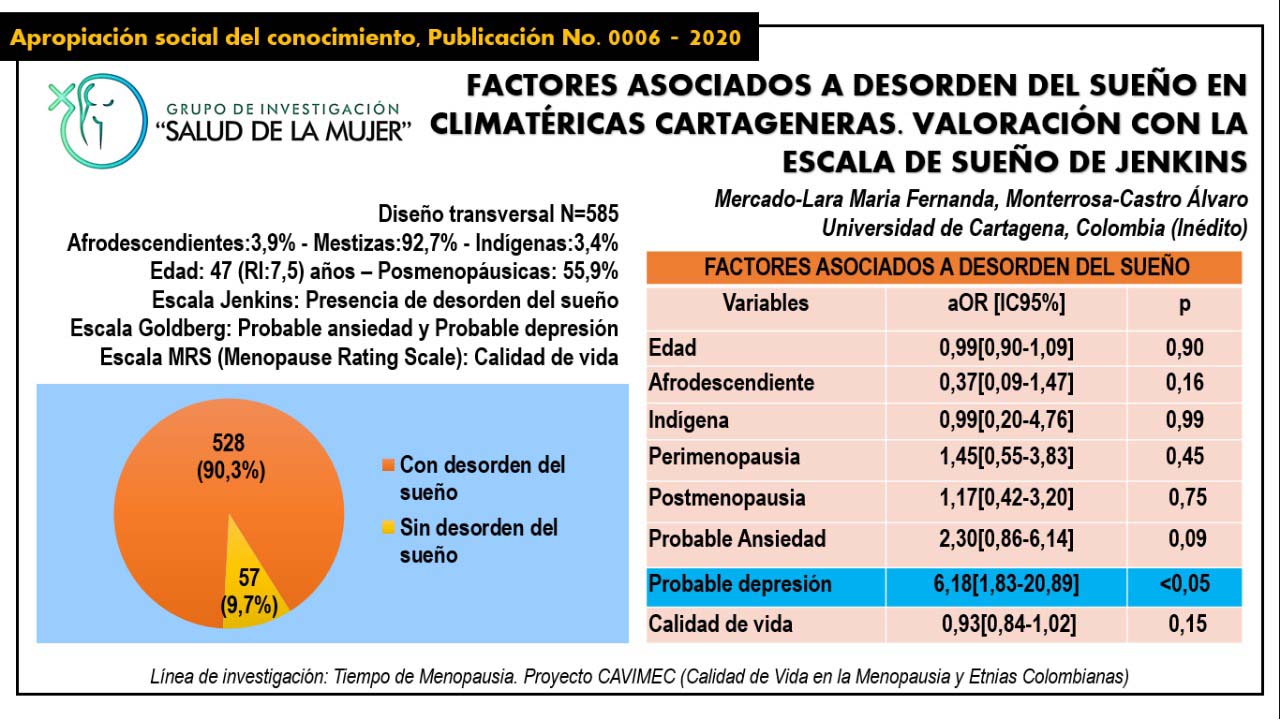 Factores asociados a desorden del sueño en climatéricas cartageneras. valoración con la escala de sueño de Jenkins.