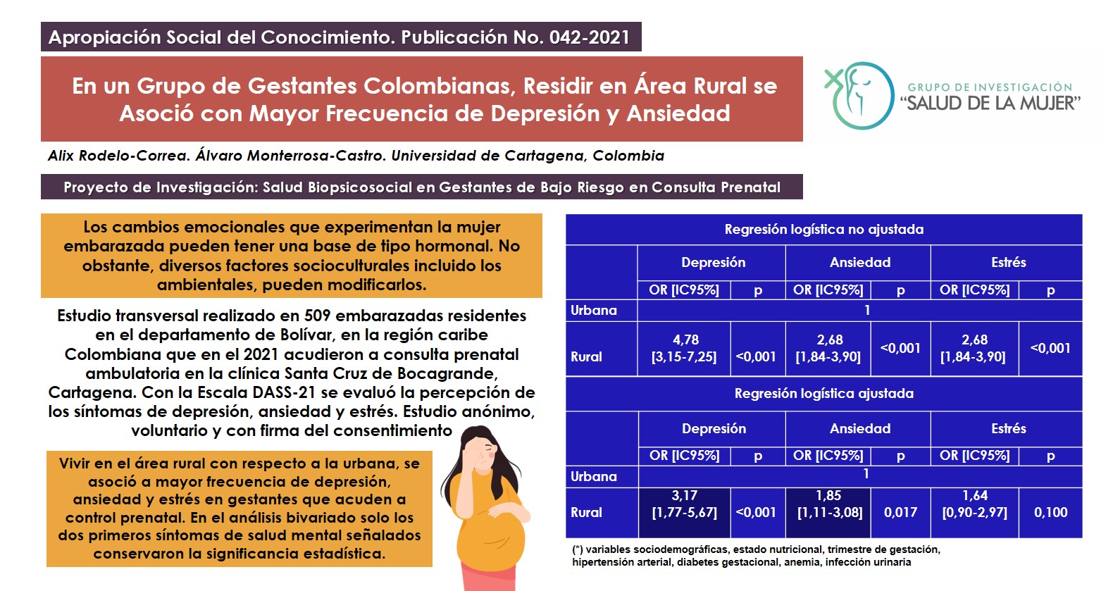 En un grupo de gestantes colombianas, residir en área rural se asoció con mayor frecuencia de depresión y ansiedad