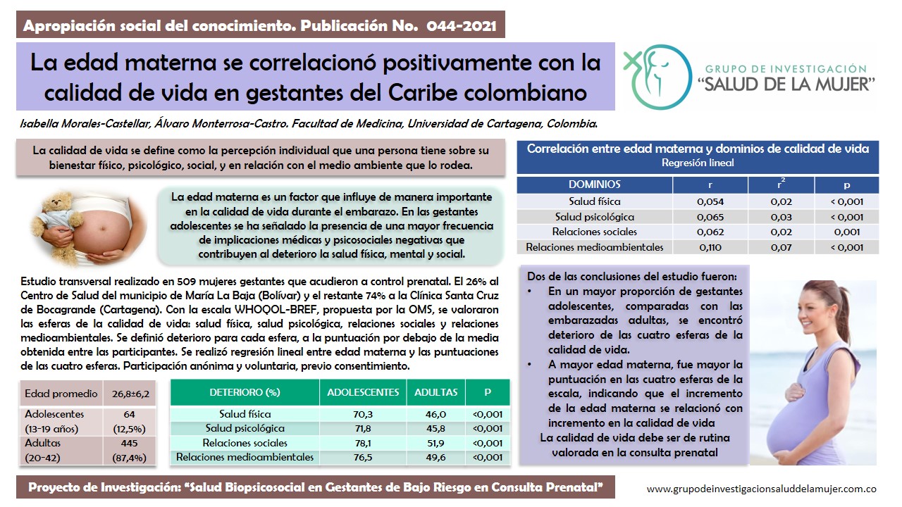 La edad materna se correlacionó positivamente con la calidad de vida en gestantes del caribe colombiano