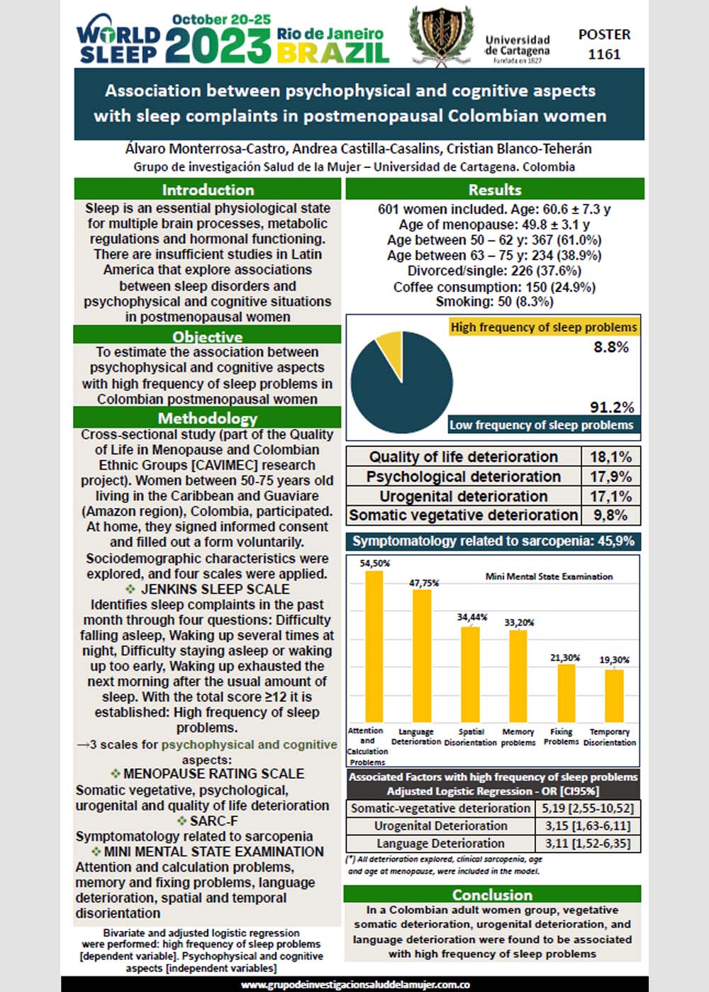 Relación entre alteraciones neurocognitivas, psicológicas y físicas con trastornos del sueño en mujeres colombianas posmenopáusicas