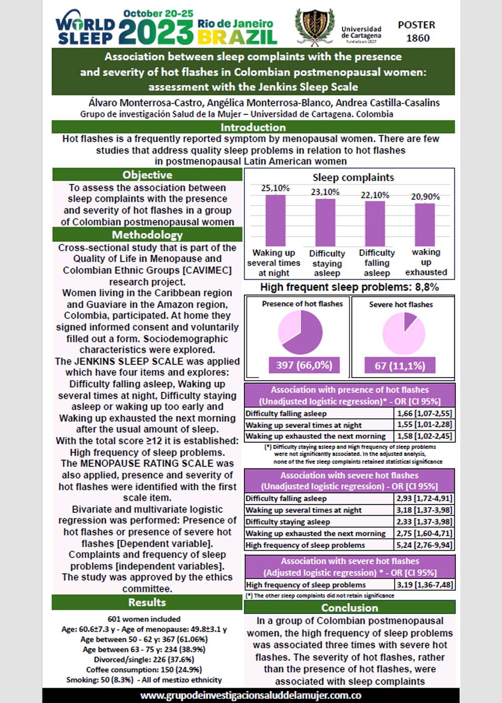 Association between sleep complaints with the presence and severity of hot flashes in Colombian postmenopausal women: assessment with the Jenkins Sleep Scale