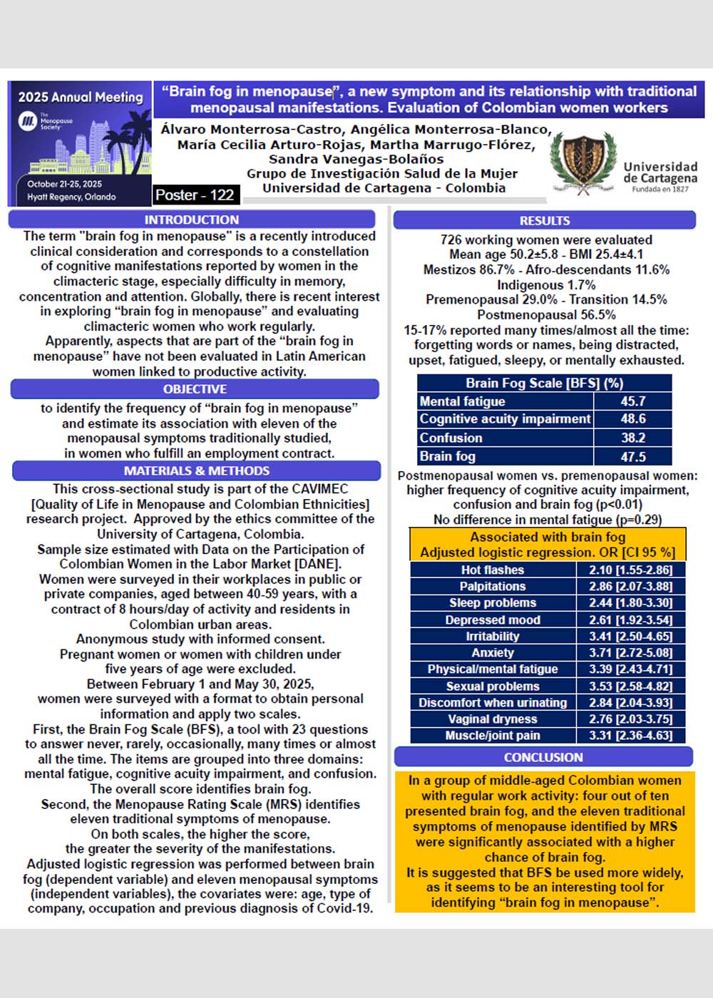 “Brain fog in menopause”, a new symptom and its relationship with traditional menopausal manifestations. Evaluation of Colombian women workers