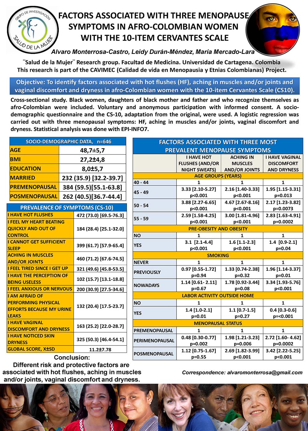 FACTORS ASSOCIATED WITH THREE MENOPAUSE SYMPTOMS IN AFRO-COLOMBIAN WOMEN WITH THE 10-ITEM CERVANTES SCALE