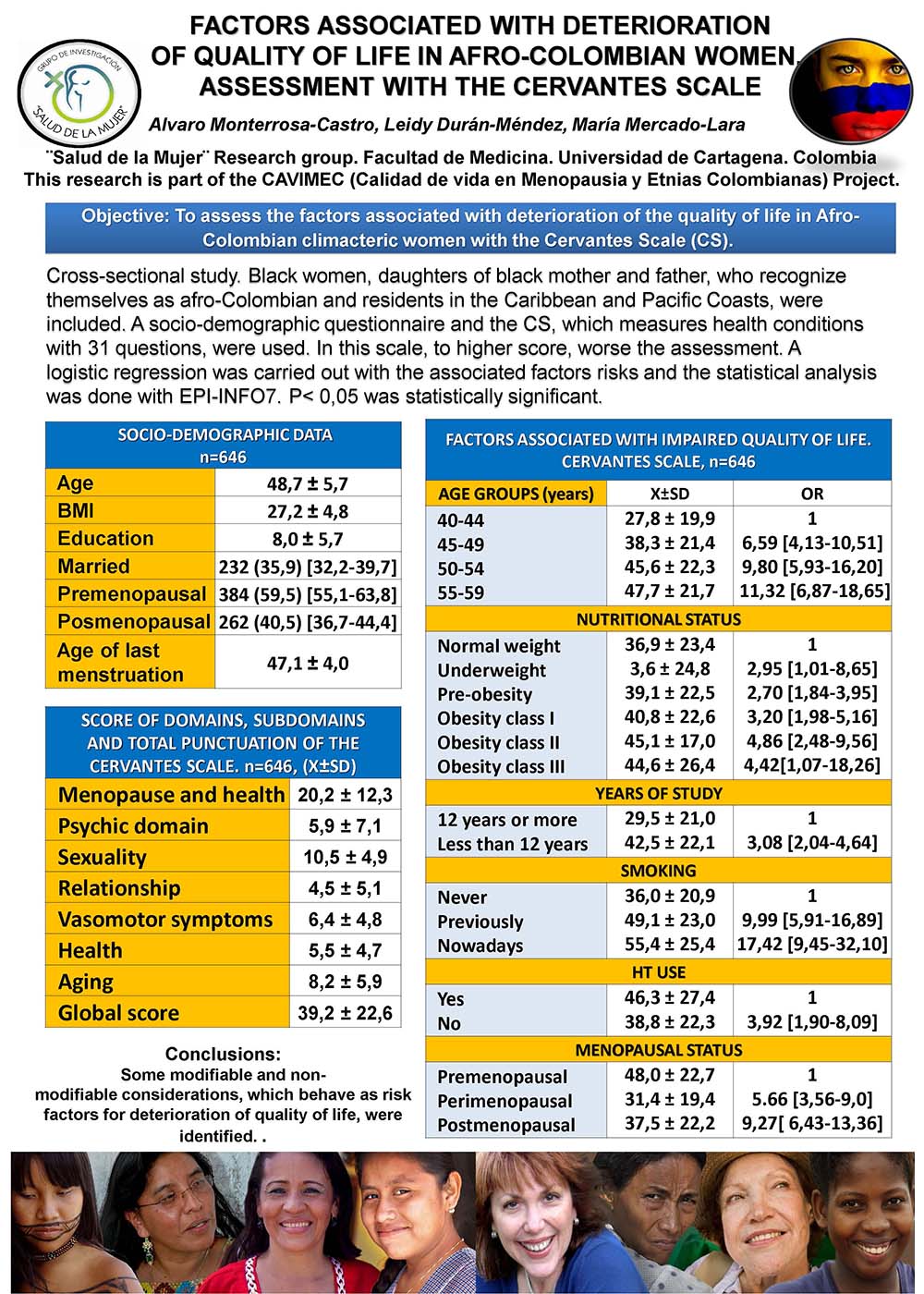 FACTORS ASSOCIATED WITH DETERIORATION OF QUALITY OF LIFE IN AFRO-COLOMBIAN WOMEN. ASSESSMENT WITH THE CERVANTES SCALE