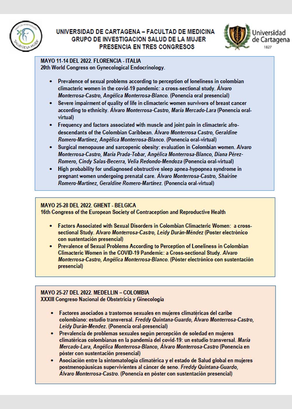 Presentados en la Bienal de Ginecologia-Bogota 2019