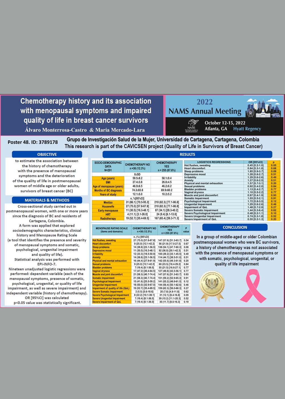 OVERWEIGHT AND OBESECOLOMBIAN CLIMACTERIC WOMENHAVE HIGH PREVALENCE OF HOT FLASHES AND POOR QUALITY OF LIFE