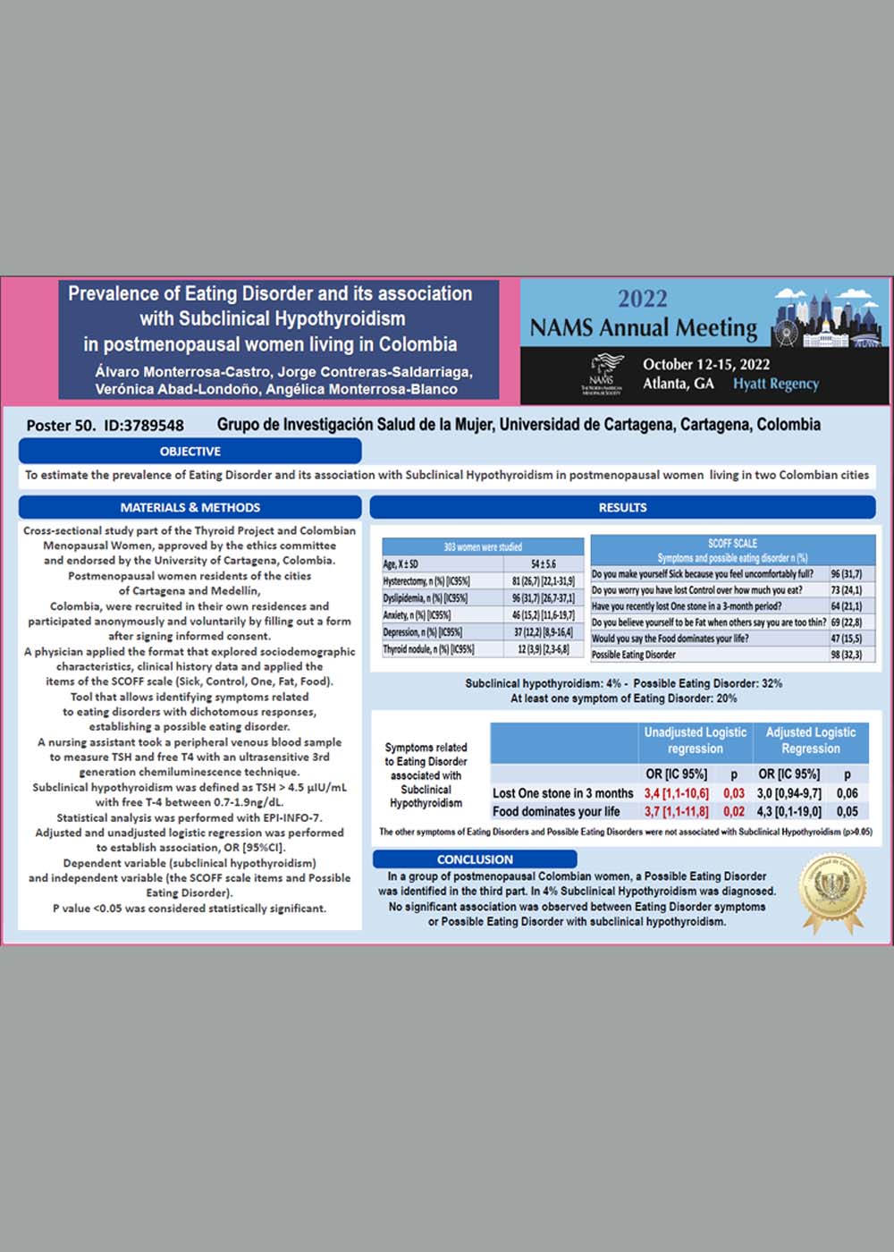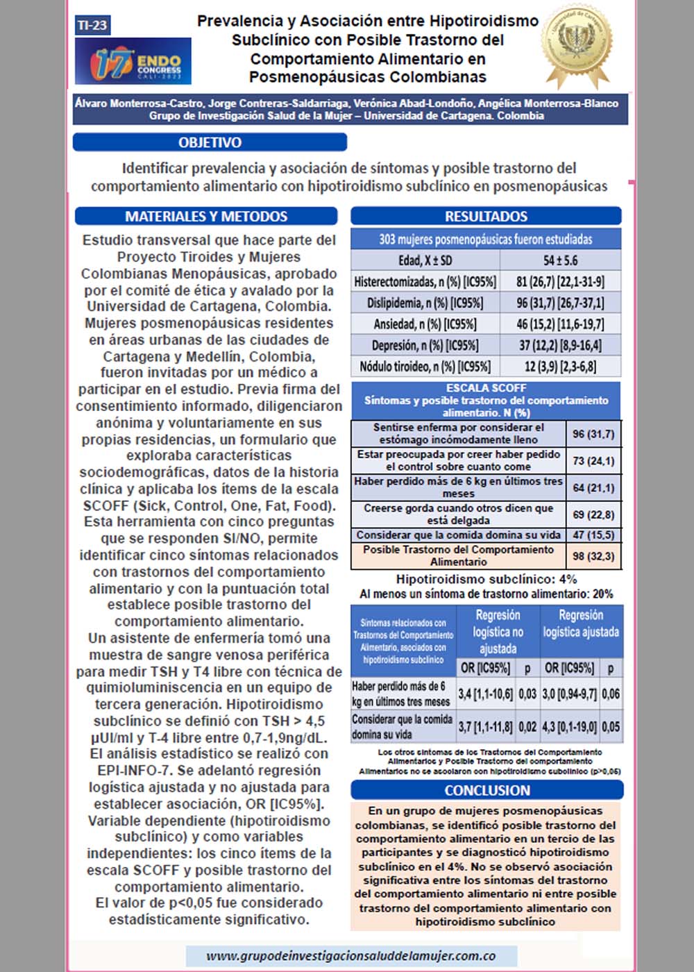 Prevalencia y Asociación entre Hipotiroidismo Subclínico con Posible Trastorno del Comportamiento Alimentario en Posmenopáusicas Colombianas