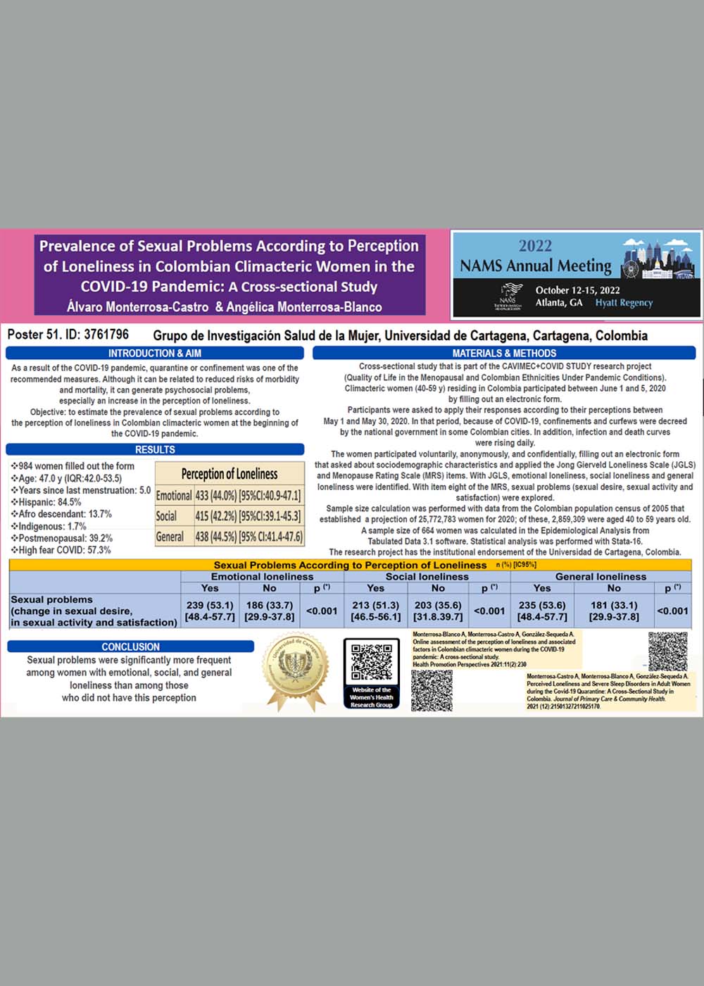 QUALITYOFLIFE ANDSEXUALDYSFUNCTIONIN CLIMACTERIC WOMENLIVINGIN A COLOMBIAN CARIBBEANREGION
