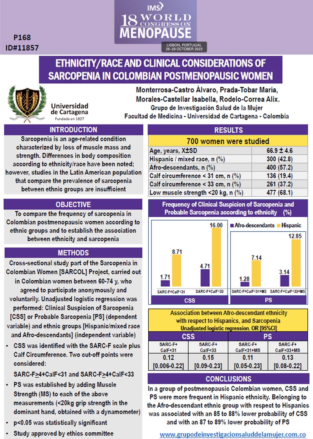 Factores relacionados con sarcopenia en mujeres menopáusicas colombianas: datos del proyecto de investigación SARCOL