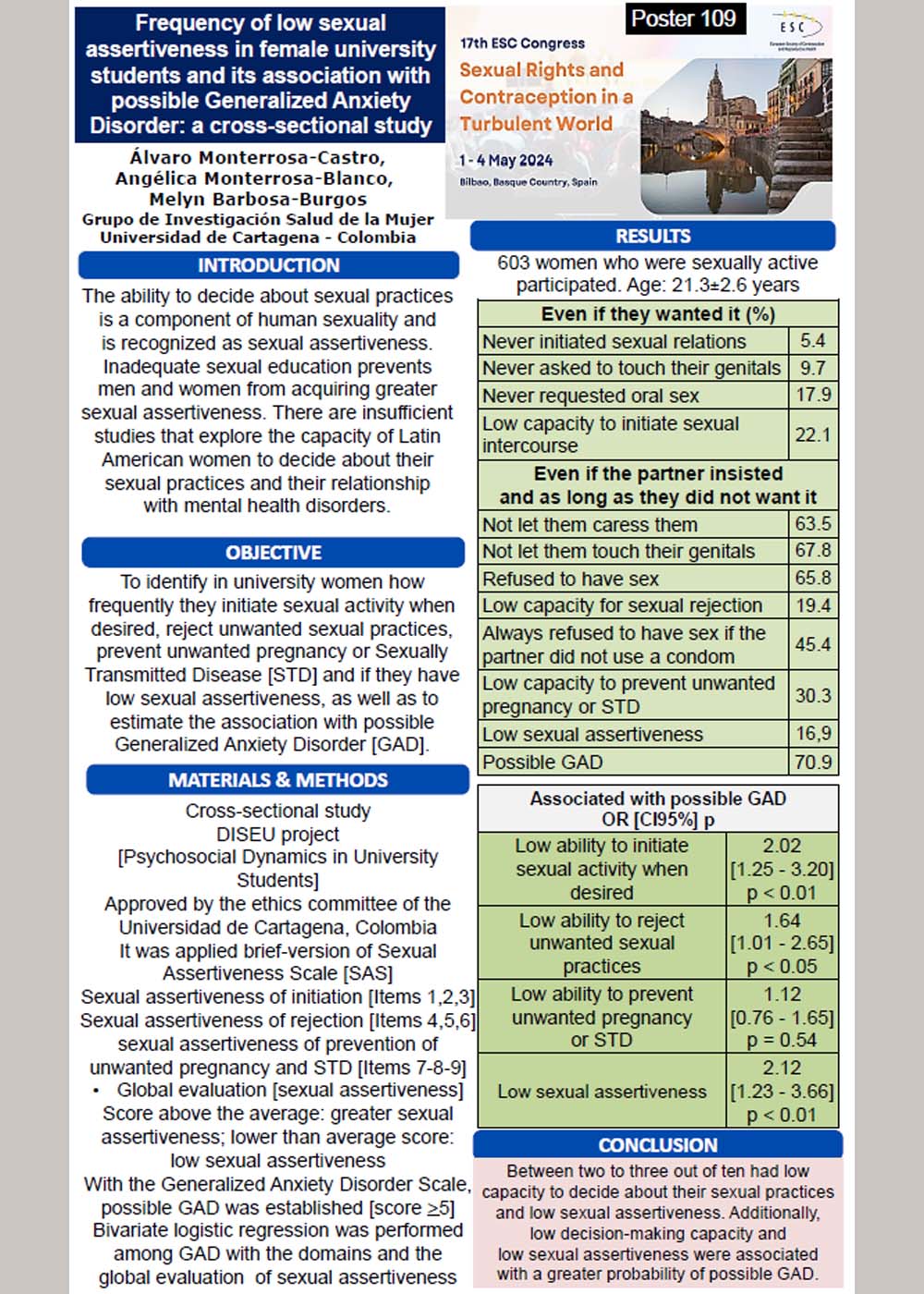 Frequency of low sexual assertiveness in female university students and its association with possible Generalized Anxiety